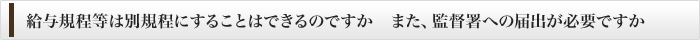 給与(賃金)については、就業規則に必ず記述しなければなりませんが、決めるべきことが多く就業規則本体にせるには載せるにはボリュームが大きいなどの理由で、別規程にすることは差し支えありません。ただし監督署には必ず届け出ることが必要です。また、出張旅費などについては就業規則の絶対的必要記載事項ではありませんから、就業規則の中にその定めをしなくても差し支えありませんが、これに関する一般的規程を作る場合には、就業規則の中に規定する必要があります。ただし、その適用が営業部員のみといった場合は、監督署へ届け出るまでのことはないでしょう。